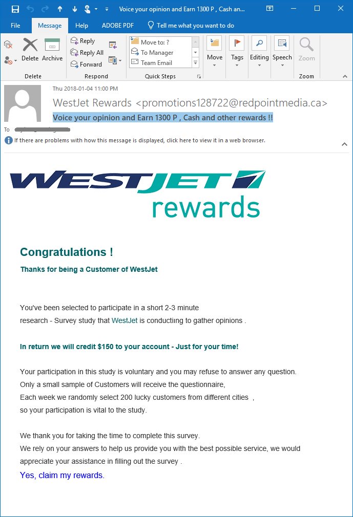Mark J Richardson On Twitter Heads Up Westjet Pretty Good Phishing E Mail Attempt Posing As Westjet Rewards Membership Survey Email Claims To Be From You Redpointmedia But Link Routes To A Server In